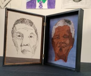 Galerij Golf, 2024, 86 x 56 cm, € 450, – I want to be Free 2019, 70 x 55 cm Niet te koop. Zomerzee 2023, 72 x 34 cm € 325,- Vuurtoren 2019, 60 x 31 cm Verkocht Hommage aan Nelson Mandela. 2024, 30 x 40 cm. Niet te koop. Pier in branding, 2017, 42x 34 cm, € 120, –